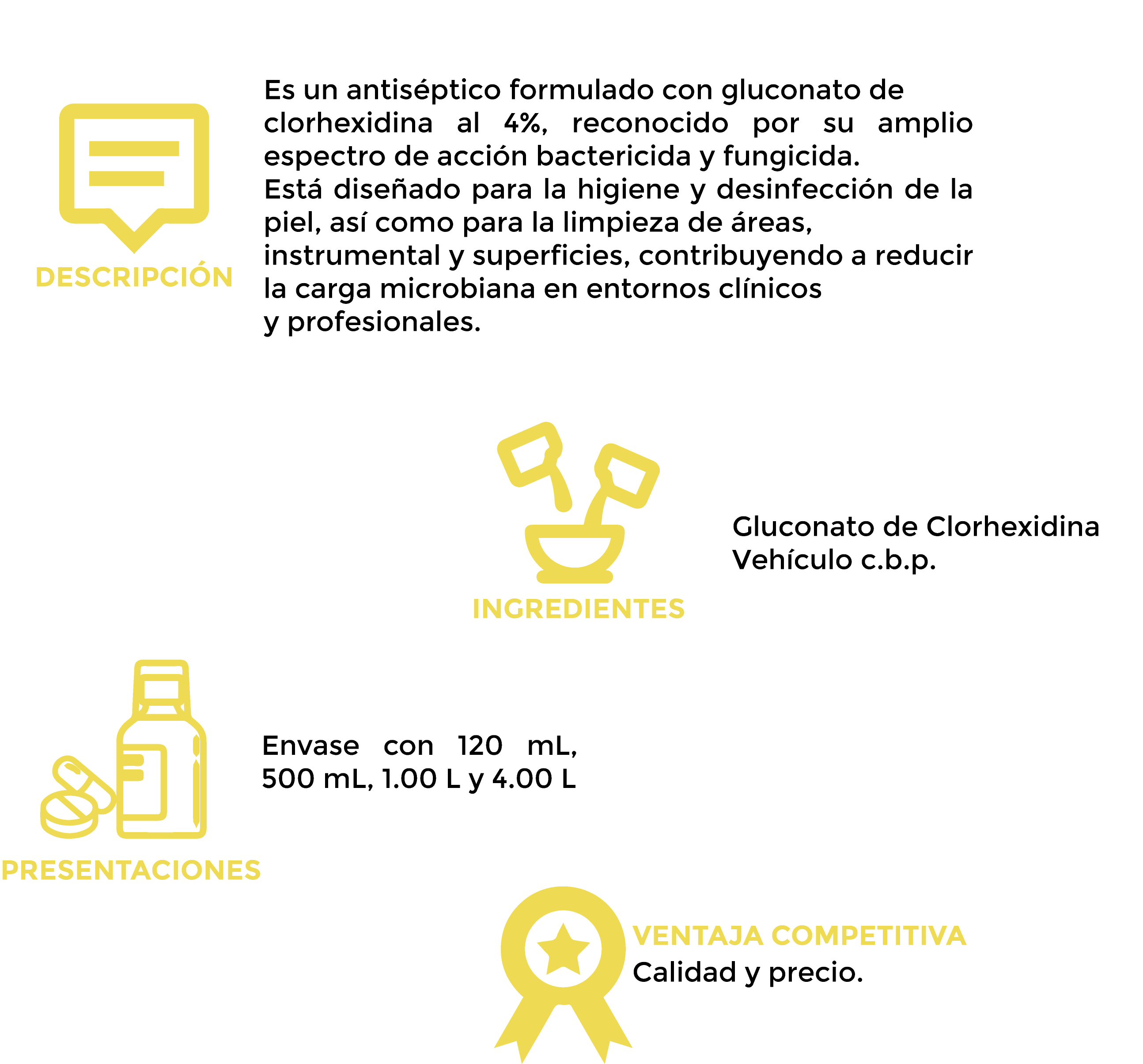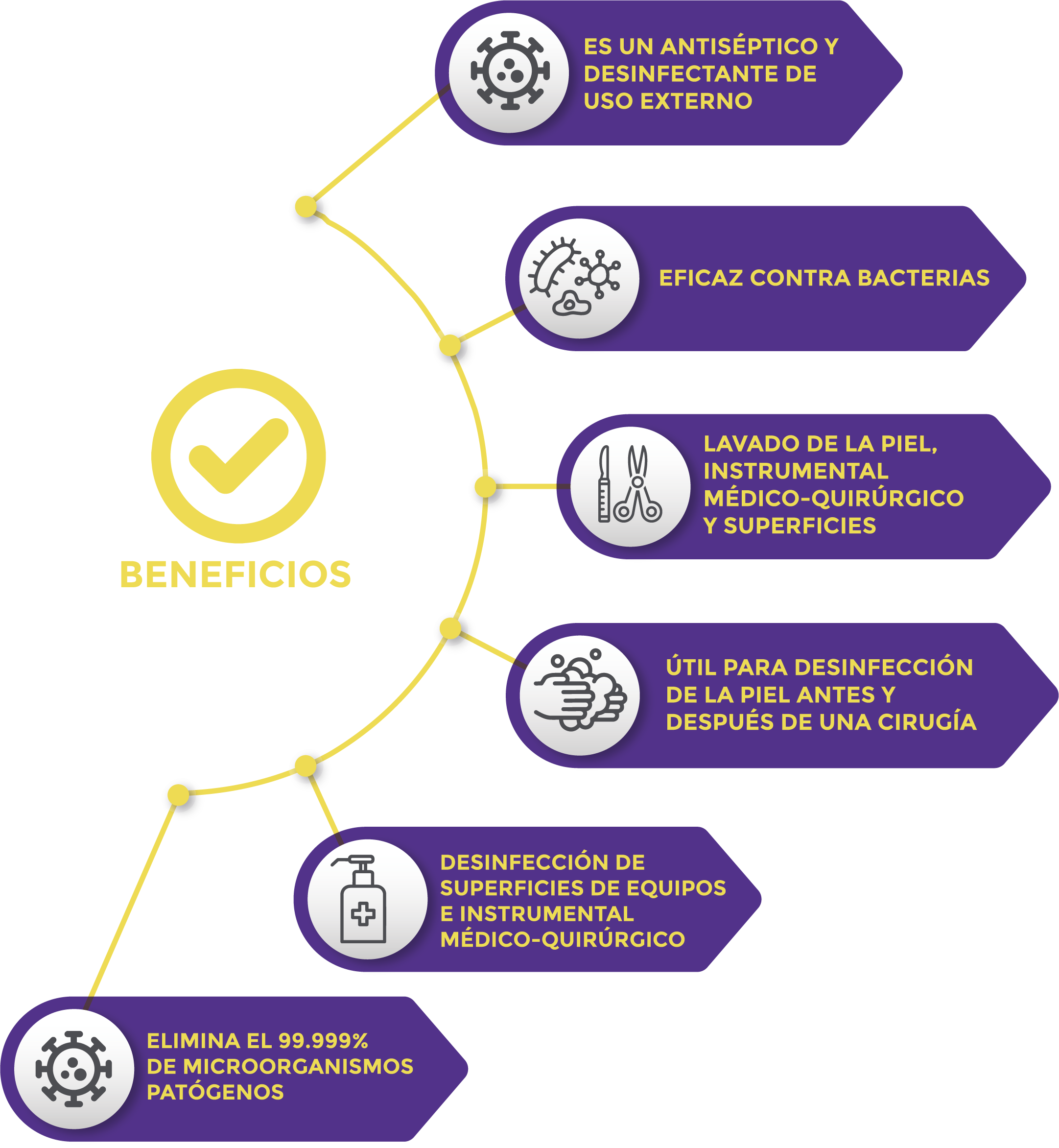 Es un bactericida efectivo a las concentraciones recomendadas. Eficaz contra bacterias Grampositivas y Gramnegativas, destruyendo la membrana plasmática de la célula bacteriana provocando pérdida del contenido intracelular.