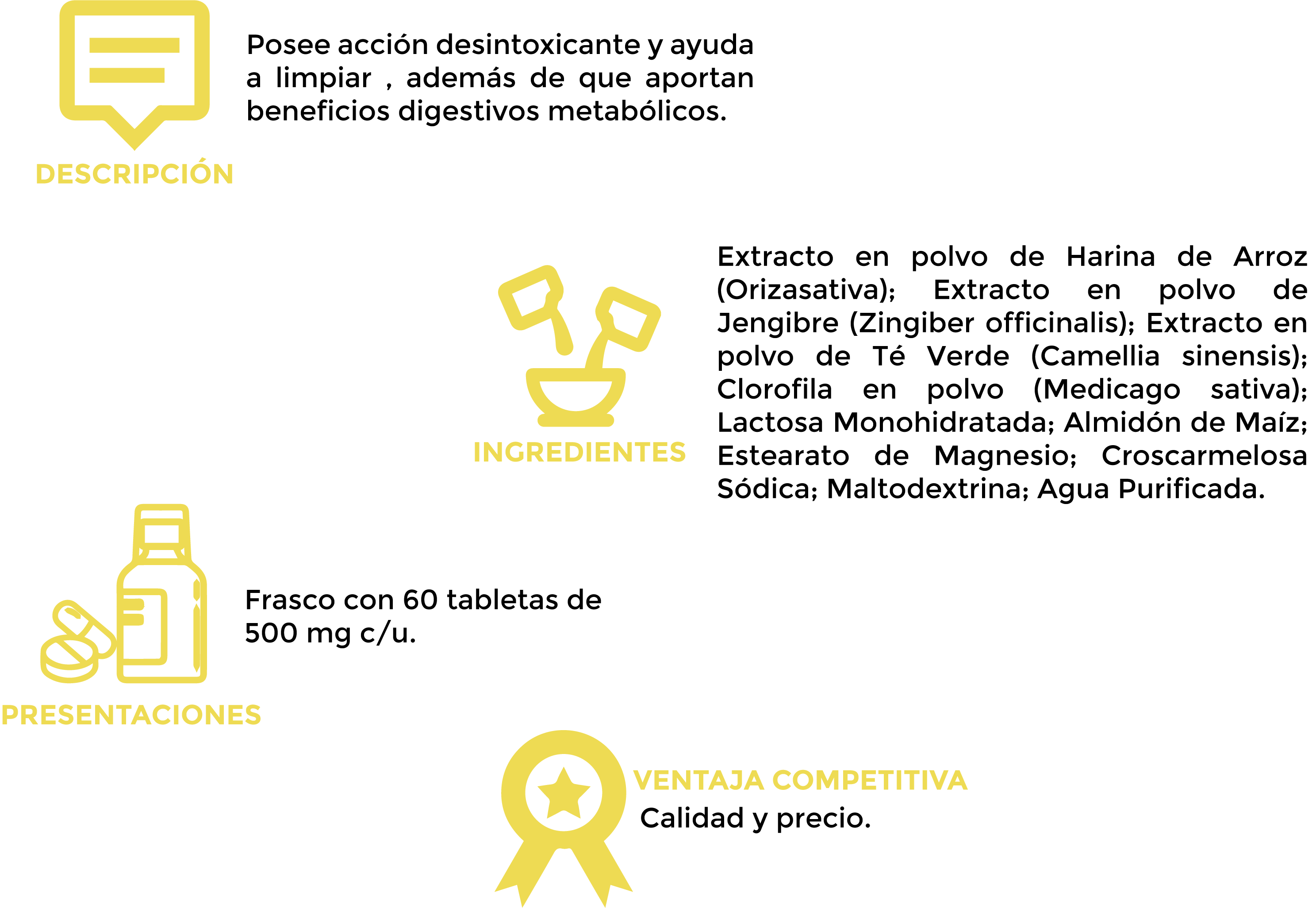 Posee acción desintoxicante y ayuda a limpiar, desintoxicar el organismo de manera segura y natural, Además de que aporta beneficios digestivos metabólicos.