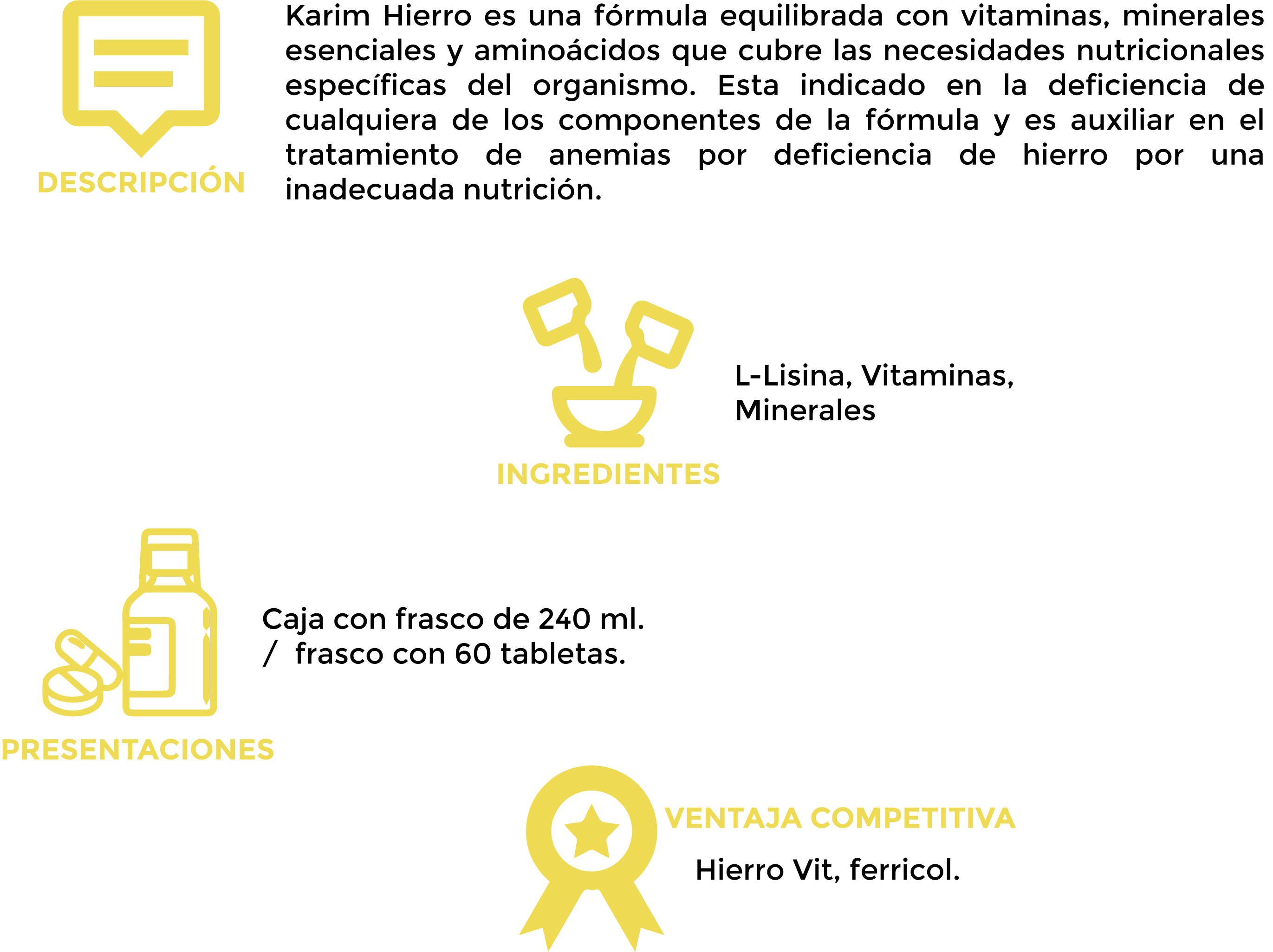 Es una fórmula equilibrada con vitaminas, minerales esenciales y aminoácidos que cubren las necesidades nutricionales específicas del organismo, esta indicado en la deficiencia de cualquiera de los componentes de la fórmula y es auxiliar en el tratamiento de anemias por deficiencia de hierro por una inadecuada nutrición.