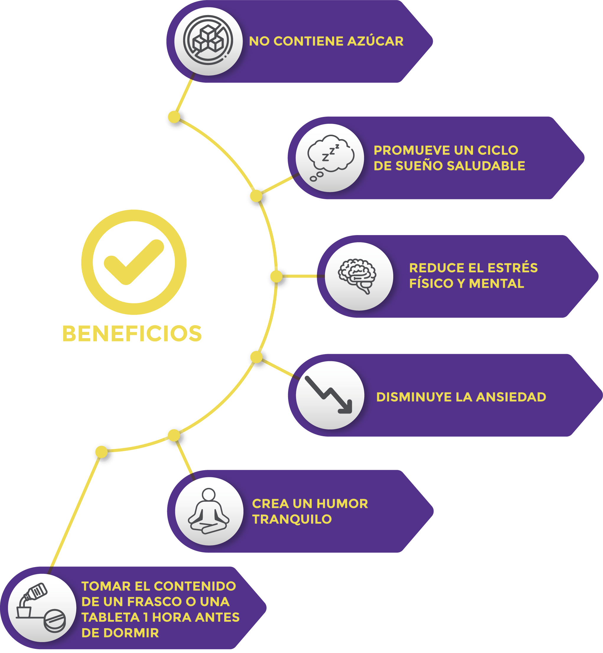 Ayuda a descansar lo suficiente al dormir reduciendo el insomnio. Ayuda mejorar la calidad de nuestro sueño favoreciendo el descanso y la relajación mental del cerebro. Cuando GABA se une a una proteína en su cerebro conocida como receptor GABA, produce un efecto relajante. Esto puede ayudar con el estrés e insomnio.